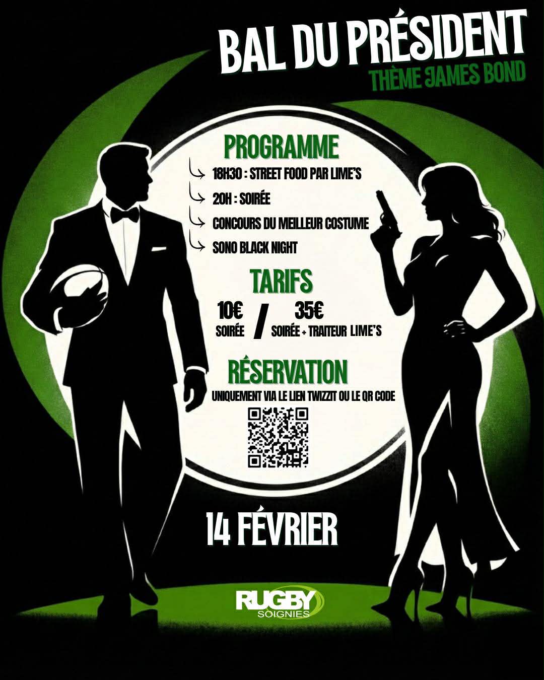 Nous vous invitons à participer au Bal du Président ce 14 février à partir de 18.30 heures, sur le thème James Bond Casino Royal !